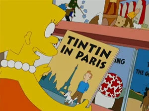 Dans l'épisode 2014, Au nom du père, alors que les Springfieldiens se balladent en Irlande, Marge menace son fils aîné de le priver de lecture des Tintin qu’il semble tant aimer ! Une citation en forme d’hommage, un peu contre nature : non pas que Bart n’ait pas le droit d’apprécier les aventures du glabre reporter belge (bien ça ne colle pas vraiment avec l’esprit du personnage), c’est dans le ton respectueux que cette citation détonne avec l’esprit satirique général.