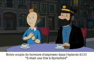 Puis dans la 21ème saison (pas sûr que je vive assez vieux pour la voir celle-là) où il est carrément mis en scène assis à une terrasse parisienne ! Notez le manque de crédibilité de Haddock en buveur de Kawa.