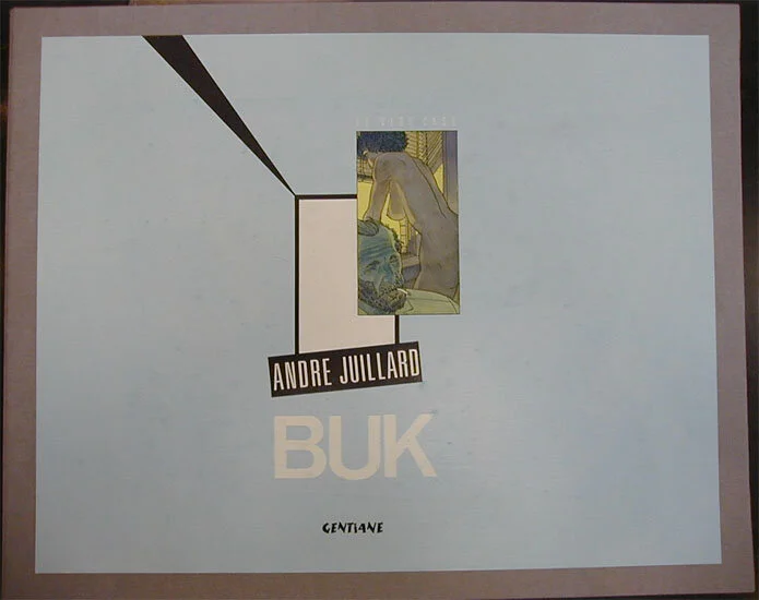Peut-on imaginer plus antinomiques que Juillard et Bukowski ? Pourtant en 1985, souhaitant sans doute se rafraîchir après des années à faire l'enlumineur pour des séries historiques, le maître de la ligne régulière et du cadrage délicatement insolite fournit un beau portfolio pour les éditions Gentiane justement consacré au vieux dégueulasse. Tiré à 900 exemplaires, cet ensemble signé et numéroté mêle errances urbaines et chambres d'hôtel dans un registre presque apaisé. A l'origine ce portfolio valait 490 francs. Le nôtre est à vendre à 110 euros et il porte le n°876.
